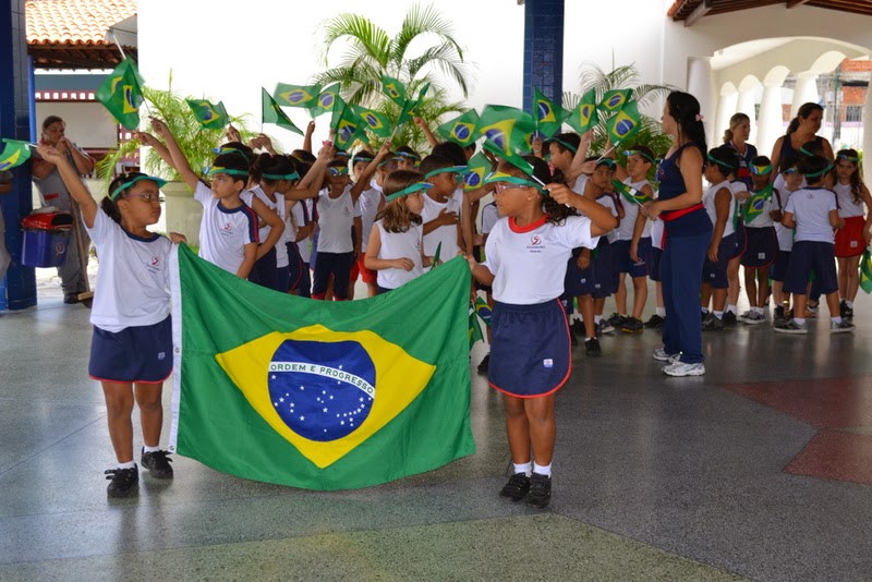 Fechando a semana, a Educação Infantil teve uma introdução ao civismo e cantaram o Hino Nacional, logo após fez um desfile pelas dependências da escola e puderam mostrar tudo o que aprenderam.